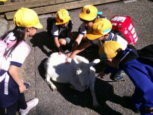 また、アヒルやモルモットに触れている時間では、動物に優しく接する子供たちの姿を見ることができました。