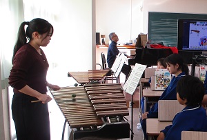 演奏後に児童から「チャールダッシュを演奏しようと思ったわけ」や、「チャールダッシュを練習し始めた時期」「木琴が上手に弾けるようになったわけ」など、演奏した先生にいくつも質問がありました。今回の学校にある木琴による演奏によって、木琴という楽器や 演奏された曲「チャールダッシュ」に対する児童の関心が高まったコンサートでした。