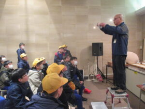 視聴後はサイエンスショーを行い、てこの原理や慣性の法則についての実験を見ました。
