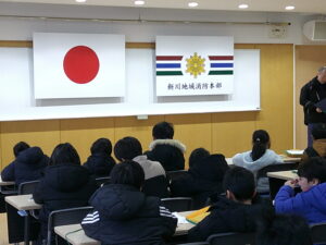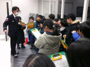 消防士の方のお話を熱心に聞いたり、間近で消防車を見せていただいたりしながら命を守る仕事について学びました。