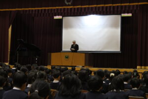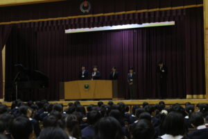 離任式では、今年度をもって本校を離任される先生方からご挨拶をいただきました。これまでのご尽力に感謝するとともに、新天地でのご活躍とさらなるご多幸を心よりお祈りいたします。