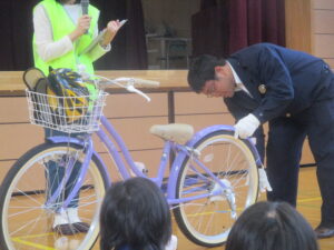 自転車交通安全教室 2026年4月23日 黒部市立中央小学校投稿者 3年生, 活動記録 4月22日、自転車安全教室が行われました。 自転車は左から乗り、左から降りることや、普段の自転車の点検の大切さを学びました。 自転車に乗るときは、ヘルメットをしっかり着用して、命を守ります。