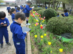 校庭や中庭で春の植物や生き物をたくさん見つけることができました。