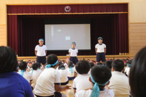 10月 フレンド集会 2025年10月3日 黒部市立中央小学校投稿者 全校 10月2日(木)、フレンド集会を行いました。今回は「運動会に向けて」をテーマに集会を開きました。 集会では、運動会にちなんだクイズが出題され、子供たちは楽しく活動していました。また、各組の団長、副団長からは、団員に対して運動会に向けての熱い激励の言葉があり、会場は大きな拍手に包まれました。 運動会に向けて、子供たちのやる気もより一層高まりました。本番に向けて、全校みんなで力を合わせて取り組んでいきます!